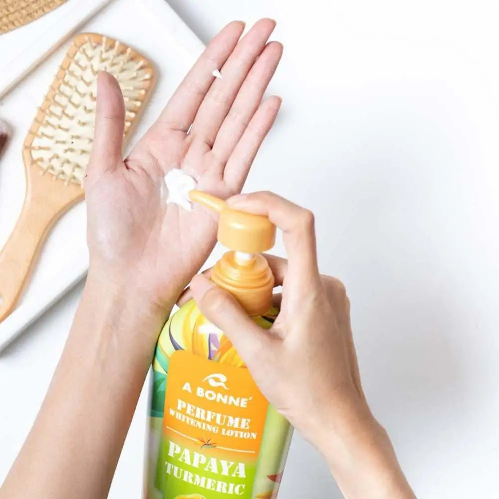 If you're looking for a skincare product that combines hydration, whitening, and nourishment, Abonne Perfume Whitening Lotion Papaya Turmeric is the perfect choice for your daily skincare routine.