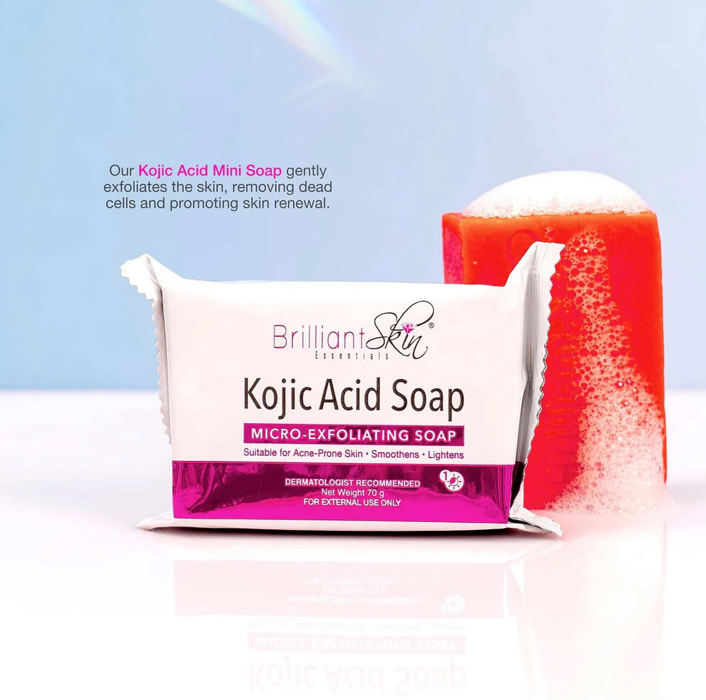 🔹 Step 1: Kojic Acid Soap (AM & PM) – Lather on damp skin for 3 minutes before rinsing
