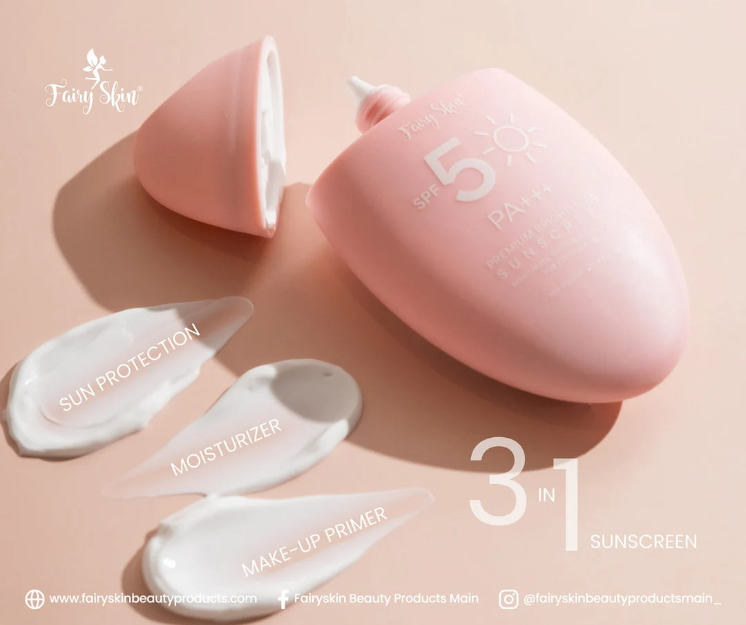 Experience the ultimate in sun defense and skin radiance with the Fairy Skin Premium Brightening Sunscreen. This advanced formula, powered by SPF 50+++, offers superior protection from harmful UVA and UVB rays, safeguarding your skin against sun damage. But that's not all—this multi-functional sunscreen is also a powerful whitening and hydrating treatment, giving you a luminous, even-toned complexion all day long.